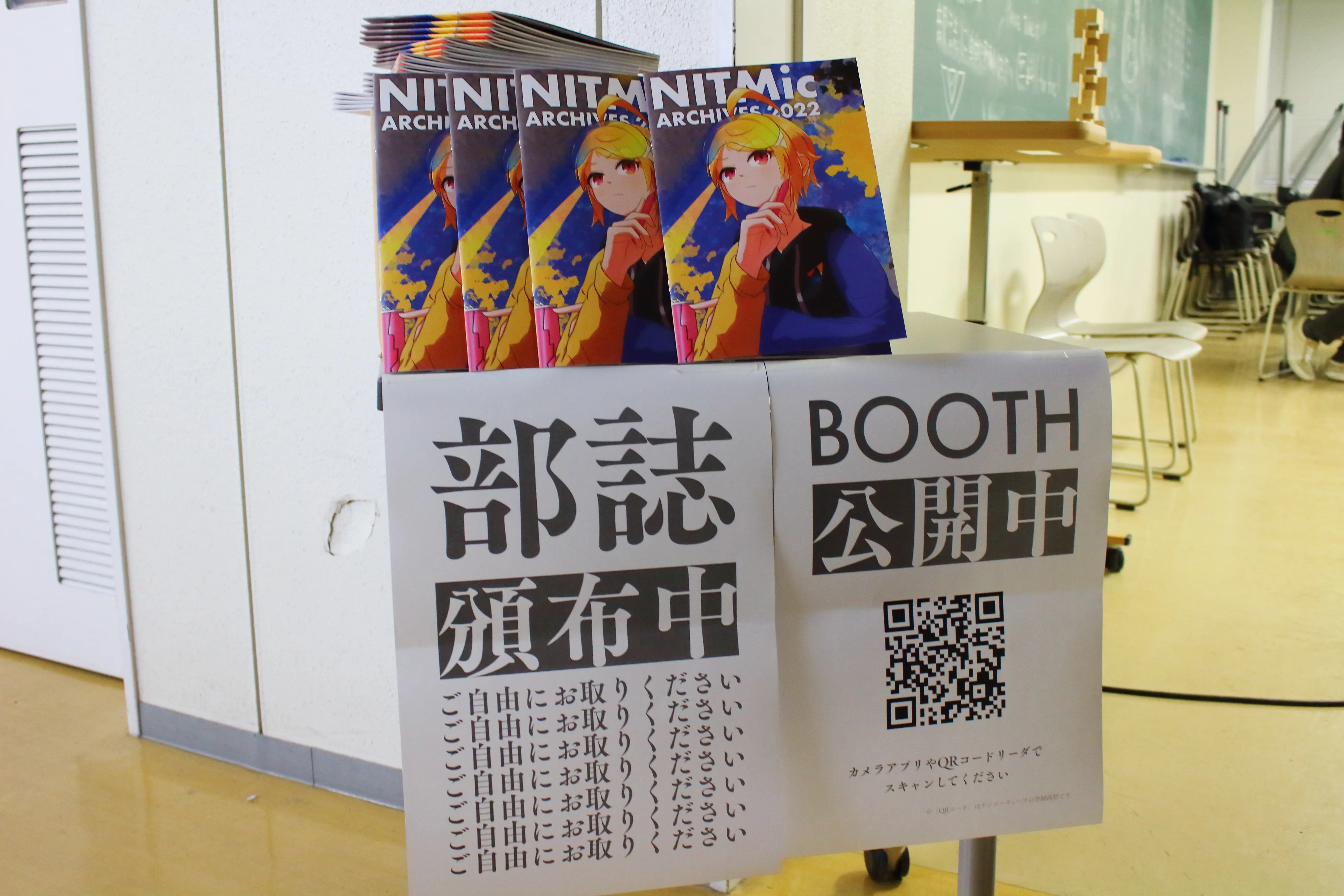 今年はなんと部誌の頒布も行いました(ご協力頂いた部員の方々ありがとうございました)。2022 年度部員の作品、記事、メンバー一覧などが載っております。BOOTH でも公開中ですので、ご興味のある方は是非ご覧ください。